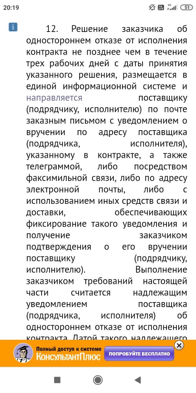 2️⃣ Направьте решение контрагенту заказным письмом с уведомлением о вручении по адресу, который указан в контракте. Письмо отправьте в течение трех рабочих дней после того, как решили отказаться от контракта.