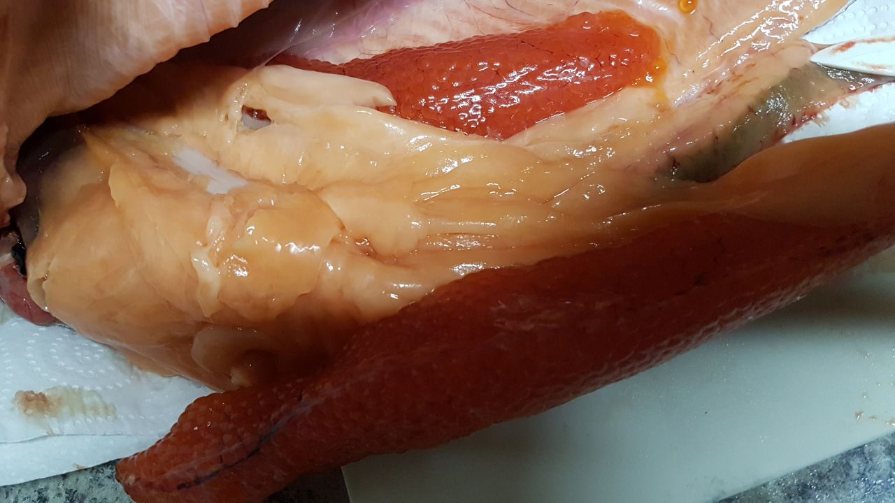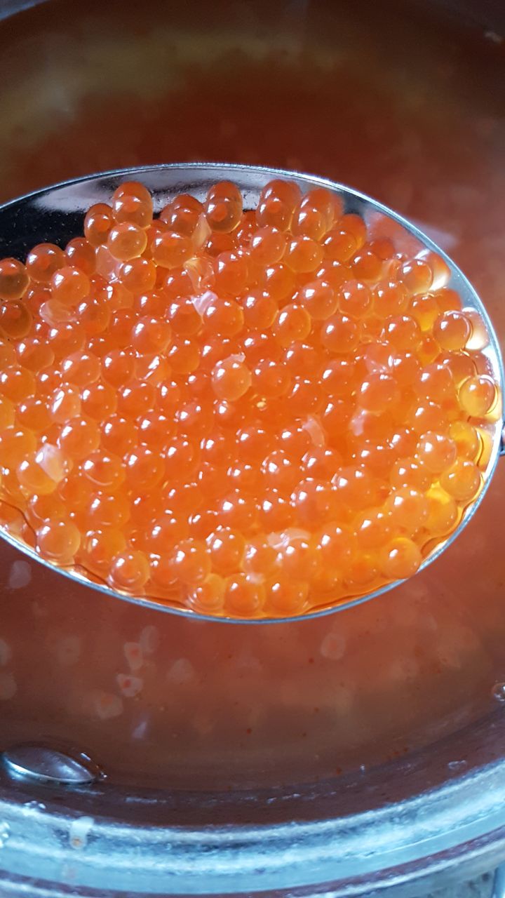 Икра постоит немного и будет ярко-красной