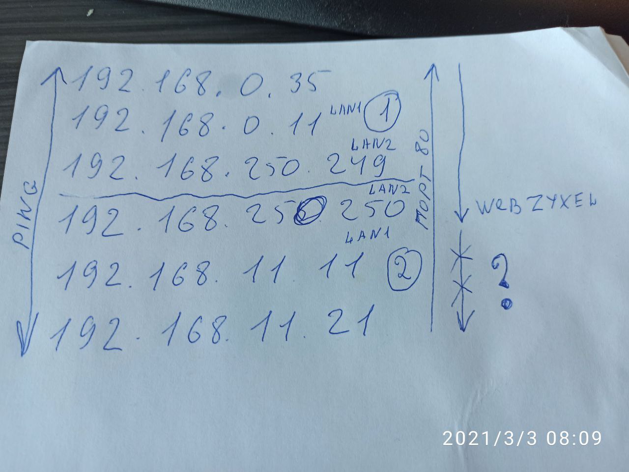 Доброе утро, сможет кто-то подсказать в чем может быть проблема? Требуется соединить две сетки через маршрутизаторы 192.168.0.Х (netgear) и 192.168.11.Х (zyxel vpn100), для этого на свободных интерфейсах создал транспортную подсеть с двумя адресами 192.168.250.249 и 192.168.250.250 соответственно, создал статические маршруты, по итогу пинги идут между подсетями 192.168.0.Х (netgear) и 192.168.11.Х (zyxel vpn100) беспрепятственно. Также из 192.168.11.Х захожу на вебморды любого устройства в подсети 192.168.0.Х (netgear), а вот в обратном направлении из подсетки 192.168.0.Х могу только зайти на вебморду по адресу 192.168.250.250 (zyxel vpn100), далее ни на коммутатор, ни на соседний интерфейс 192.168.11.11 (zyxel vpn100). Где покопаться, может политики какие-то разрешающие надо создать, к сожалению с zyxel не работал ранее и вот. Буду благодарен за помощь.