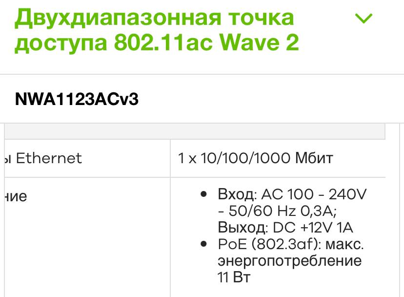Все точки из списка https://select.zyxel.ru/type/3 можно питать по PoE.