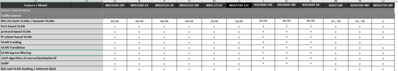 Это провайдерские модели. У бизнеса только L3 Core (XGS4600 и XS3800) с 4K, остальные 1K, кроме GS1350, у которого 256.