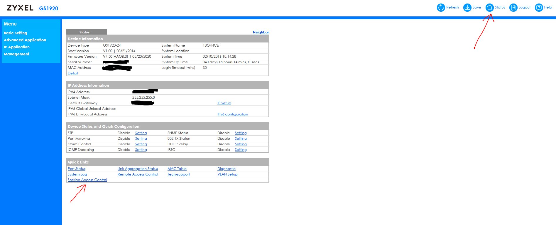 Zyxel 1900 он находится в удаленном офисе через Веб не получается достучатся до него