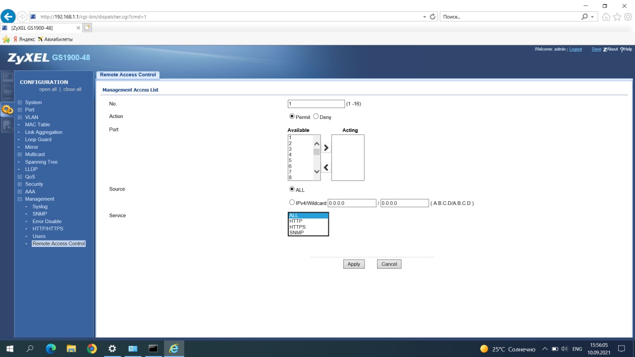 Хотел спросит может кто сталкивался с таким вопросом, как нужно настроит Zyxel GS-1900-48 что бы свитчи можно было настроит через Telnet а то у меня она настраивается только через браузер.