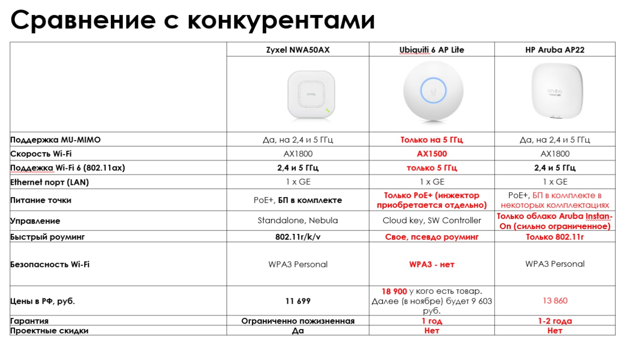 Точки (2 шт): NWA50AX, NWA110AX или NWA210AX