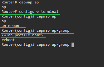 Прошу прощения, что надоедаю вам. Но к сожалению предложенное вами решение не помогло, ошибка осталась той же самой ERROR: #capwap ap-group reboot group_name, Parse error/command not found!