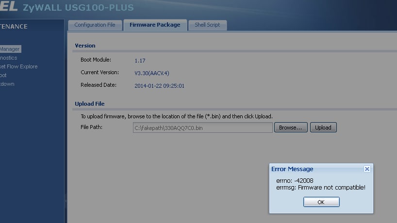 Нужна помощь в поиске прошивки для USG100-PLUS - на саппорте есть от 15 года совместимая с 100, 100-PLUS, 200. Но роутер не хочет ее есть, говорит не совместимая.....