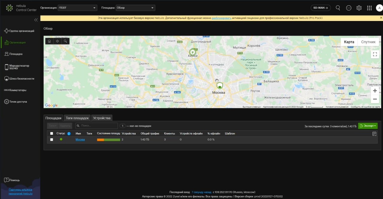 после подключения к Nebula пароль меняется, его можно посмотреть в разделе Площадка - Основные настройки. но в локалку заходить нет смысла - там будет обрезанный веб-интерфейс, поскольку девайс теперь настраивается в небуле