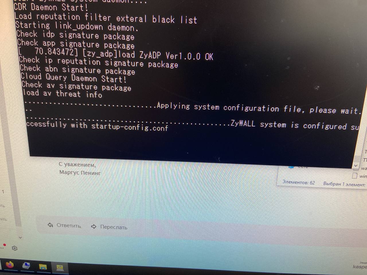 если не было, то загрузить пред версию через консоль с ftp: https://support.zyxel.eu/hc/en-us/articles/360014273779-Firmware-Recovery-Process-on-USG-ATP-VPN-Firewalls