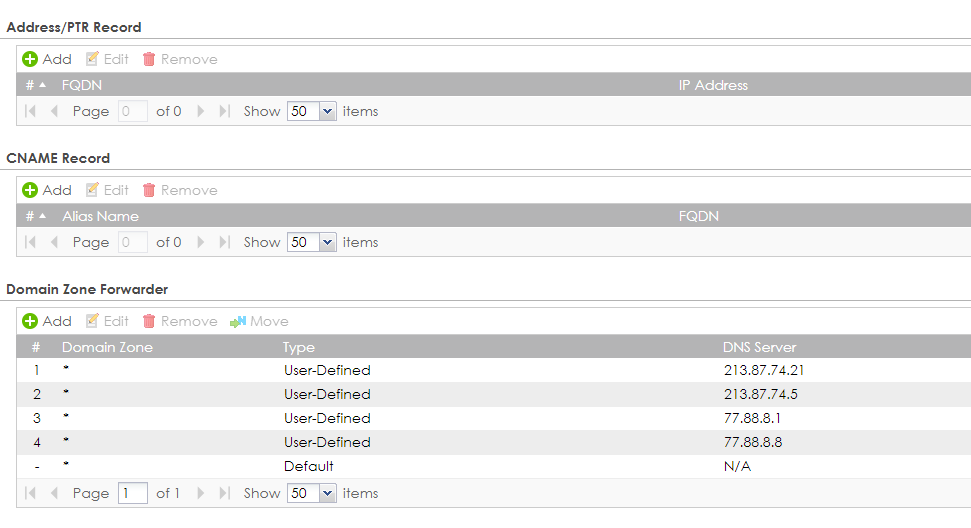 Атп/зайвол/юсг не умеют выступать в роле днс сервера, только перенаправление можно или на глухо птр вписать, разворачивайте днс сервер, а если хотите видеть все пк по имени и они на винде, то проще ад развернуть и в нем уже рулить днс