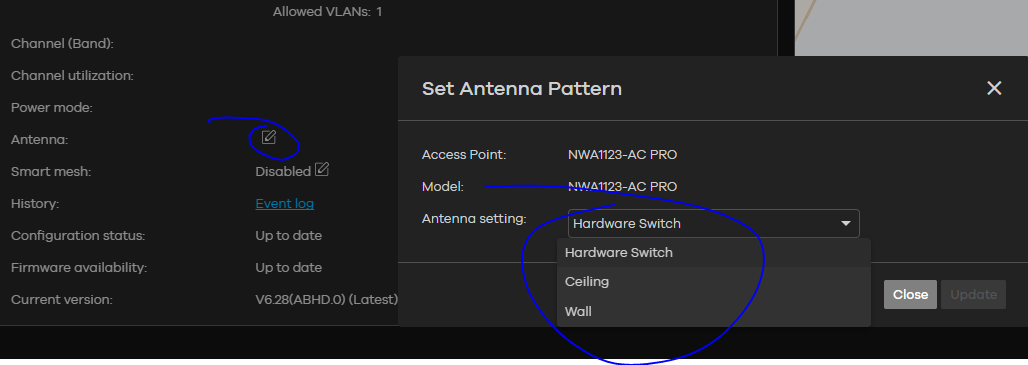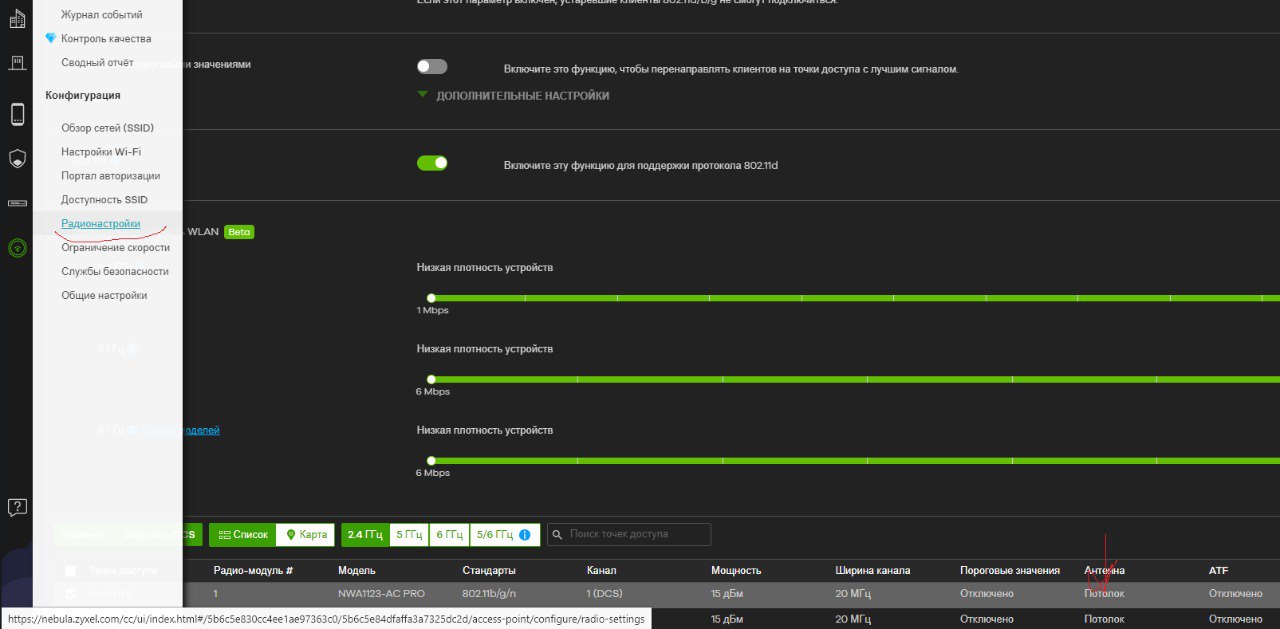есть ли через небулу возможность удалённо перевести режим работы точки доступа, со стены на потолок?