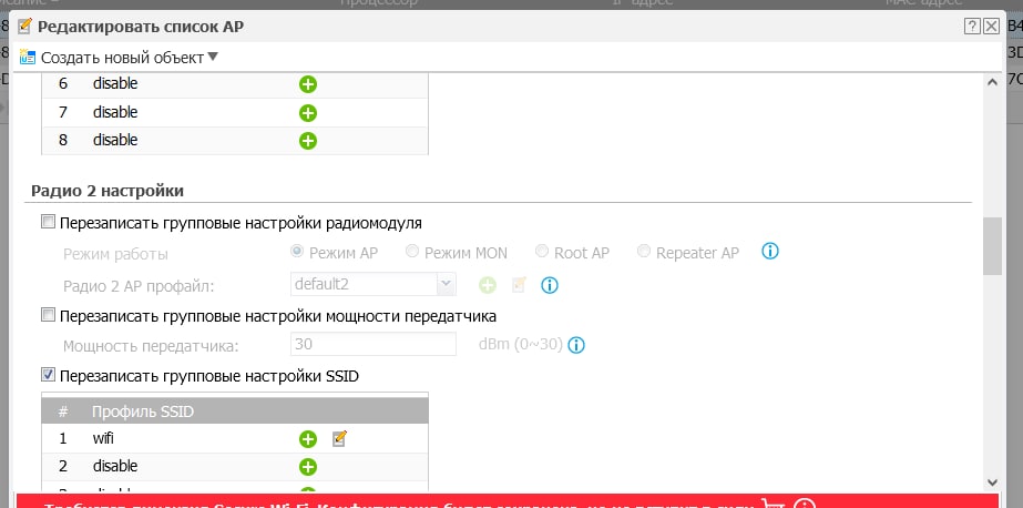Я всё равно не пойму с какой целью тут активна галочка. Если эта галочка активна, на точке доступа будет всё равно один SSID "wifi". Почему не добавляете там же SSID "test"?
