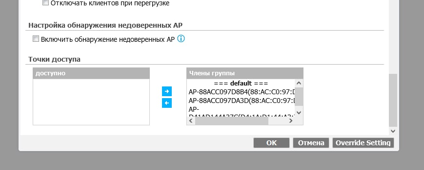 Если эта перезапись активна, то она перекроет обычные профили, назначенные точкам доступа.