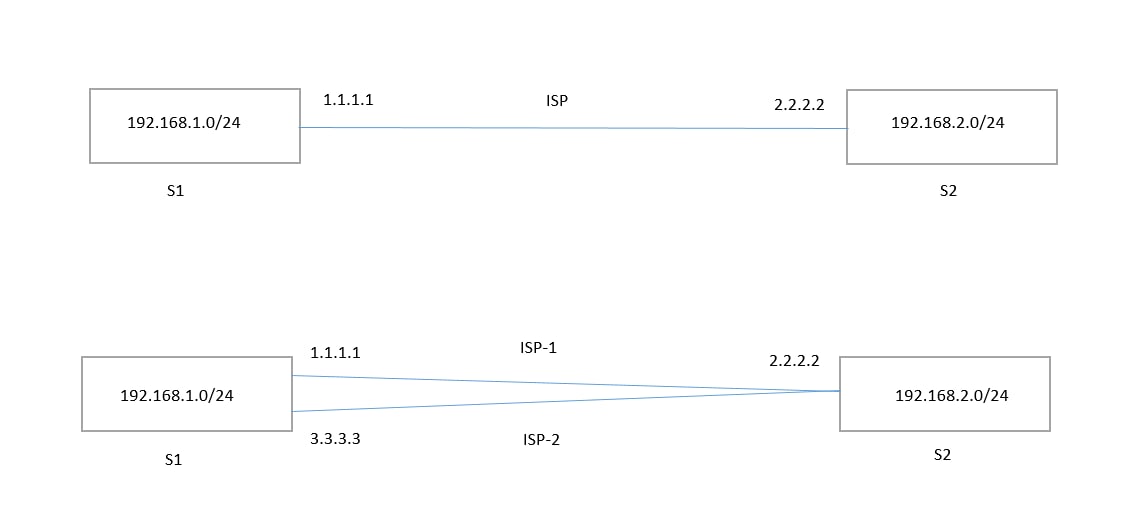 На сайте S1 добавился новый канал интернет. Подскажите как сделать настроить VPN так, чтобы при отвале ISP-1 трафик шел через второй VPN канал? Какие настройки VPN и маршрутизации необходимо сделать.