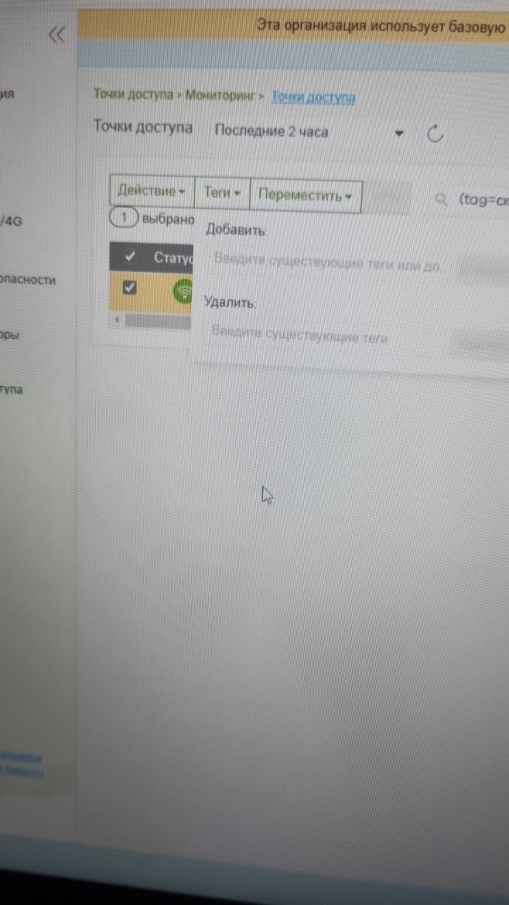 точки доступа - мониторинг - точки доступа - выделить все точки - добавить тег