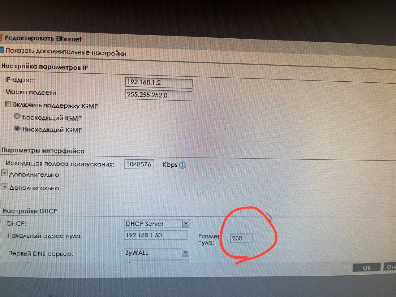 Здравствуйте, подскажите почему при таком конфиге нельзя pool сделать больше 230 адресов?