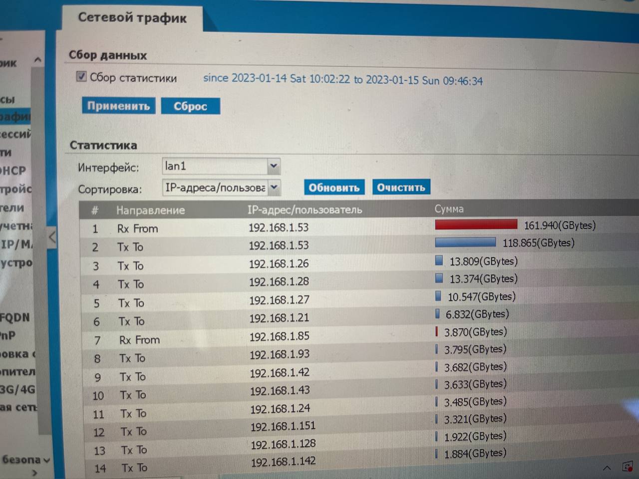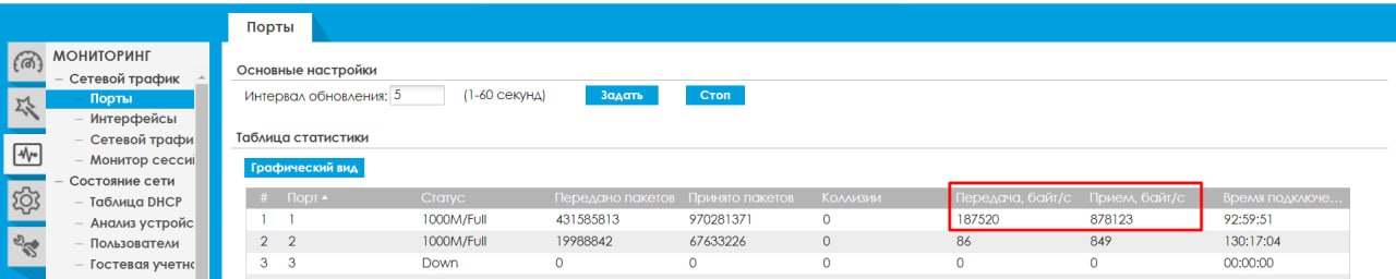 Доброе утро, flex 500 в статистике смотрю что канал забивался под 100мбит, как узнать чем и кем?