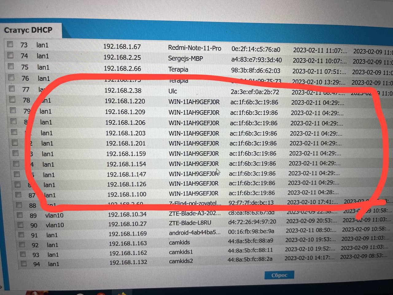 А вообще, по хорошему нужно ip/mac binding включать, он защищает сеть от перебора ip/mac.