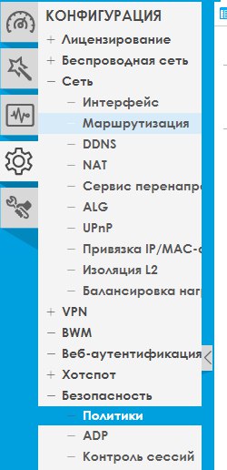 КОНФИГУРАЦИЯ > Безопасность > Политики