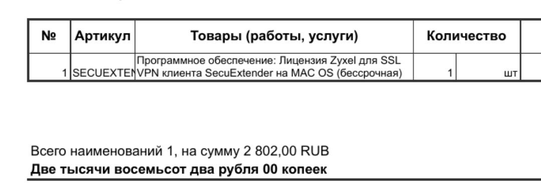 Можете прояснить по лицензированию макос SSL клиента. Эти лицензии чем отличаются и какую надо покупать (и нужно ли вообще) ??? т.к. скачанный с сайта Zyxel VPN Client установился и вроде работает без дополнительных телодвижений (по словам пользователей или они заблуждаются???)