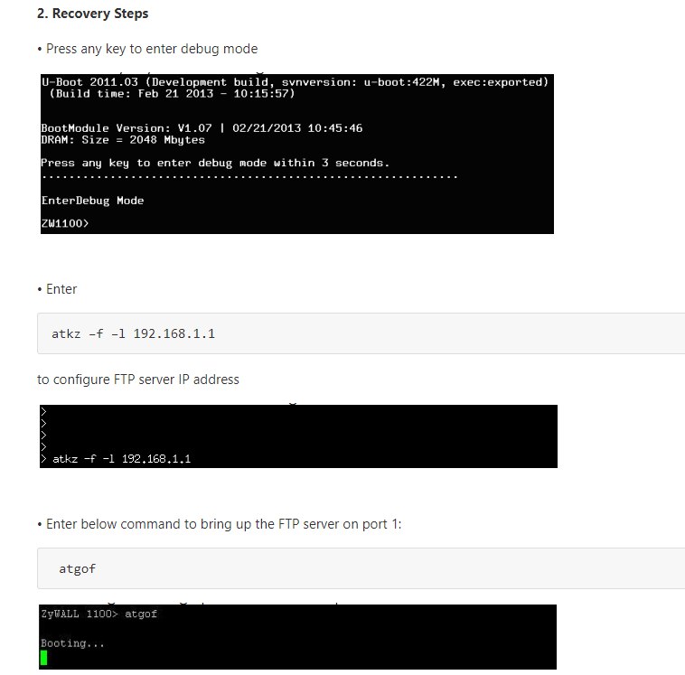 Если не обновляется, то проверьте обновление на дефолтных настройках (предварительно сохранив конфиг). Если и это не помогает, то через консоль: https://support.zyxel.eu/hc/en-us/articles/360014273779-Firmware-Recovery-Process-on-USG-ATP-VPN-Firewalls
