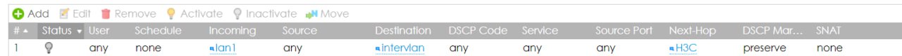 по непонятной мне причине, указывая политику incoming -lan1 destination - intervlan