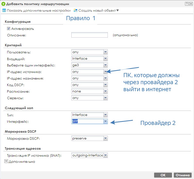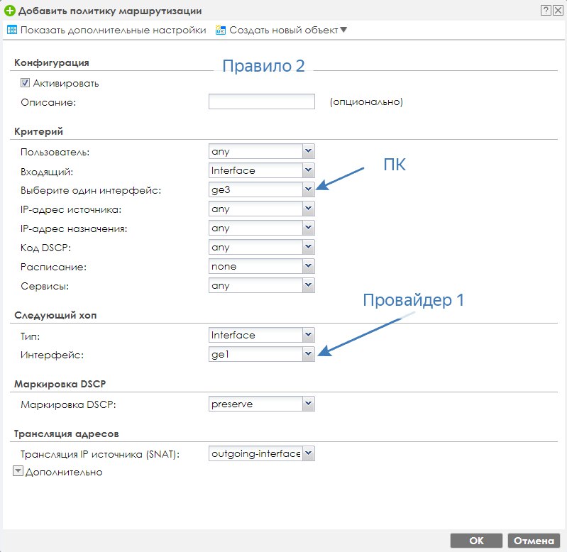Спасибо!!!! Инет перестал отваливаться, однако TRACERT до портала провайдера2 всё одно идёт через WAN, а не через SFP. И у меня все ихз LAN1 должны иметь доступ к сети провайдера 2. По сути я создал подсеть в конфигурации, её и указал, но ....