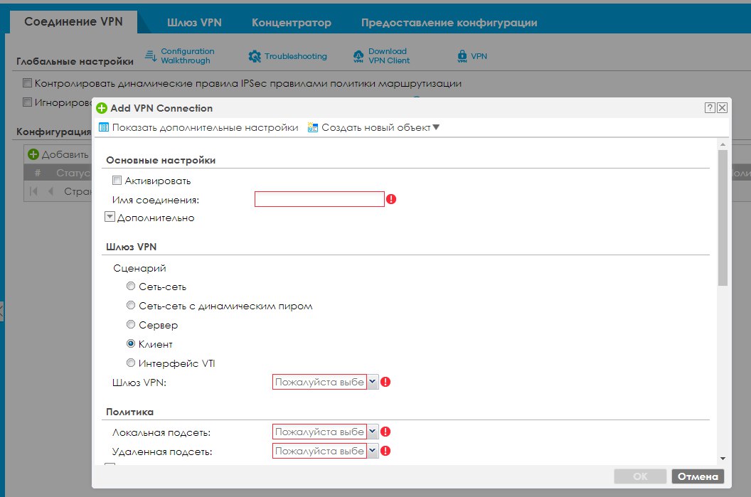 Еще когда по IPsec подключаешься как клиент, нужно вводить общий ключ, логин и пароль. А куда логин и пароль вводить тоже не совсем понятно