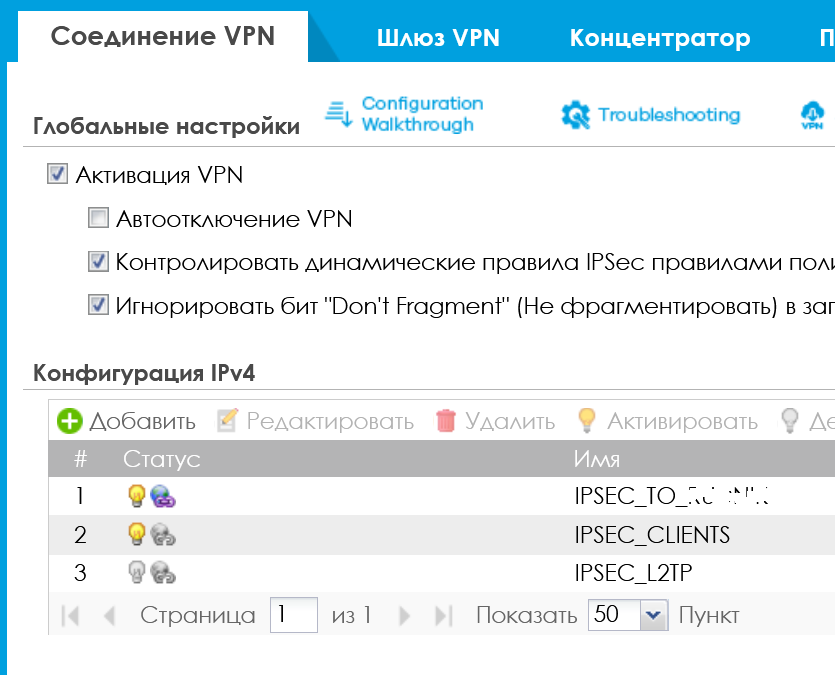 Господа, добрый день. Кто-нибудь настраивал на Flex100 IKEv2 со стандартным клиентом Windows 10? Мучаюсь все утро, уже почти добился результата, туннель строится, но уже после того как Dynamic Tunnel [IPSEC_IKEv2:IPSEC_IKE2:0x3fbcd24a] built successfully - следует [info] Send:[DEL][DEL] [count=2] и IKE SA [IPSEC_IKEv2] is disconnected [count=2], а винда сообщает "Параметр задан неверно". Что бы поковырять? Серт сгенерен и самоподписан флексом, при этом включены все галки касательно аутентификации. Аутентификация пользователя - расширенная в IPSec Gateway, mschapv2.