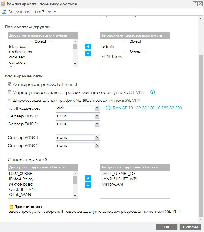 подсети прописаны те же, на ATP всё настраивалось аналогично тому, как было на Kerio, даже создаваемая SSL VPN сеть та же. Пользователи ранее подключались с помощью Kerio control VPN client, сейчас с помощью SecuExtender