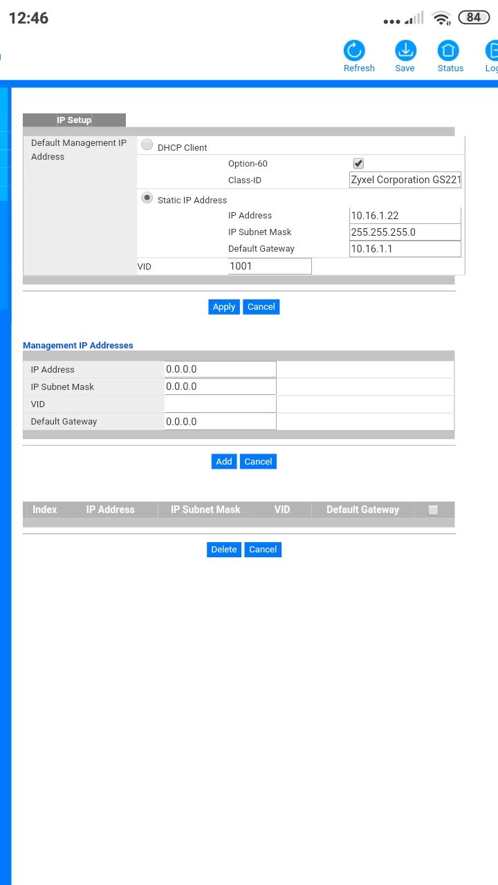 в самой небуле можно, выбрав свитч и нажав редактирование lan ip